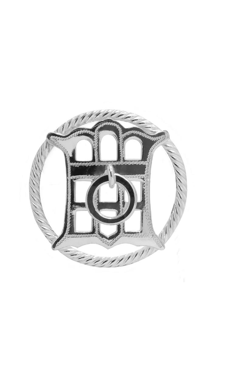 Brooch with 1 pendants Brooch in silver. Become a cultural carrier of the Sámi heritage. Mii gávdnot is a celebration of the Sámi culture and the silver as a material. Measurement: 40 mm in diameter